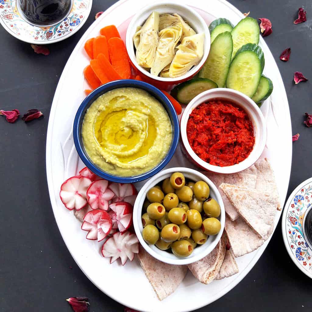 eine Zusammenstellung der oben genannten verschiedenen vegetarischen Vorspeisen