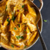 hausgemachter Rahmkäse mit Cashewnüssen und Rosinen in Butter-Tomaten-Sahnesauce
